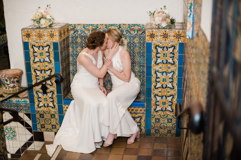 Devon and Rachel chose to have a Santa Barbara courthouse Mural Room wedding because they loved the historic architecture and the colorful details like the tiles. For their portraits we explored the entrance, staircases, and the clock tower. The clock tower has the best view in Santa Barbara! Santa Barbara Hair & Makeup styled them for their day while Twisted Twig provided the gorgeous bouquets! And, of course, I’d love the capture your day for you! You can check out my photography elopement packages here.
